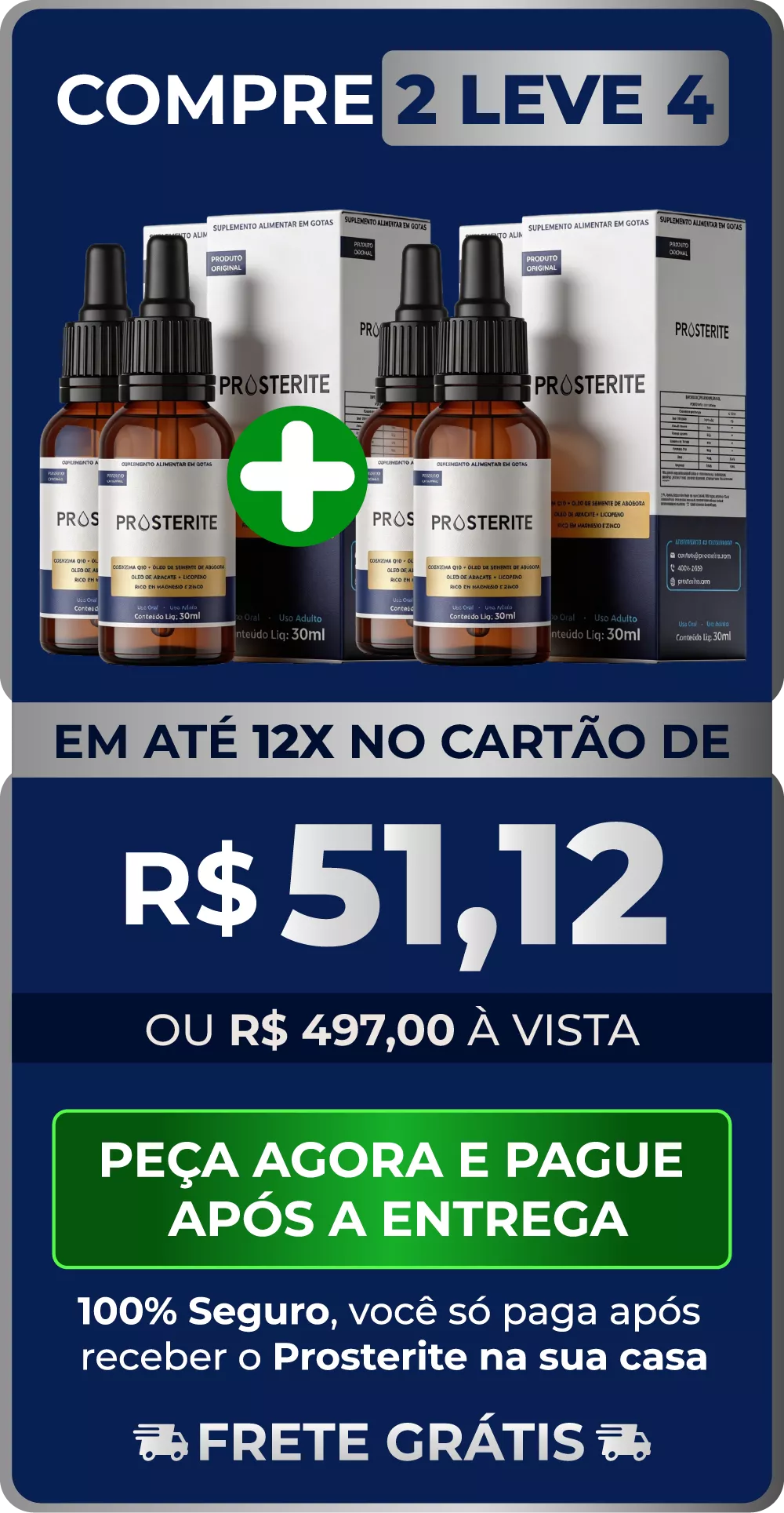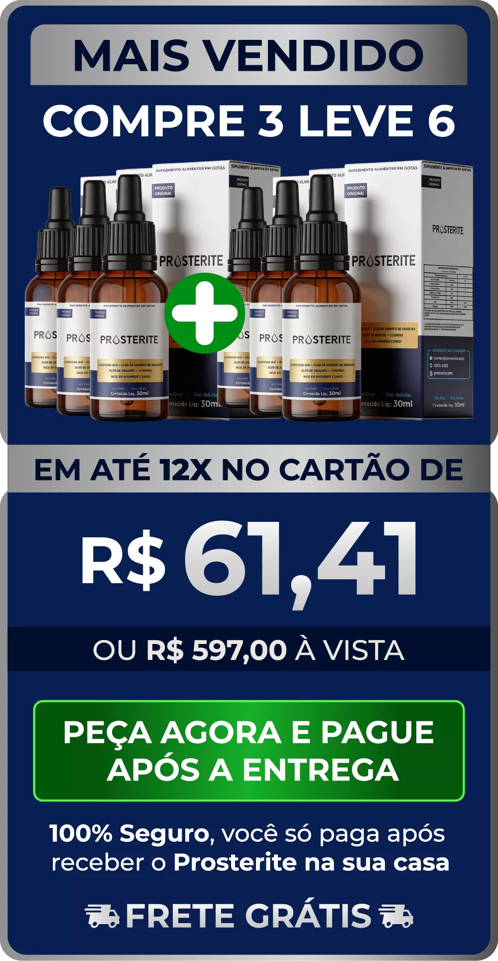 No PRОSTERITE, a sua segurança vem em primeiro lugar. Por isso, oferecemos a opção de pagamento somente na entrega: você recebe o produto em mãos, confere tudo com tranquilidade e só então realiza o pagamento.